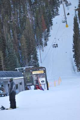 Today the mountain was covered with people....I think there was some sort of snowboard competition.