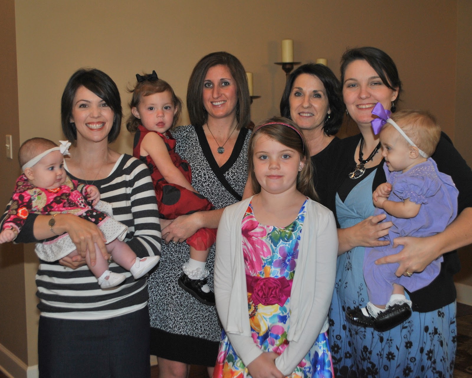 Stacy and the girls met us at mom's and we rode over to the shower together. At this point mom had her hands full of two very good things. :) Can you believe these beauties are almost seven months apart?!